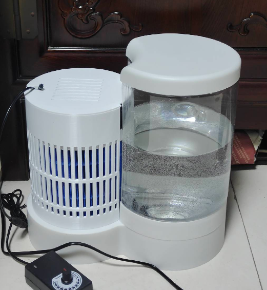 加了外罩会阻碍气流,我尝试了一些措施:细柱、镂空比 1:1、盖子上留几个椭圆孔、风扇上方留空。但效果仍明显影响加湿效率,水量消耗下降,说明空气流动受阻严重。
