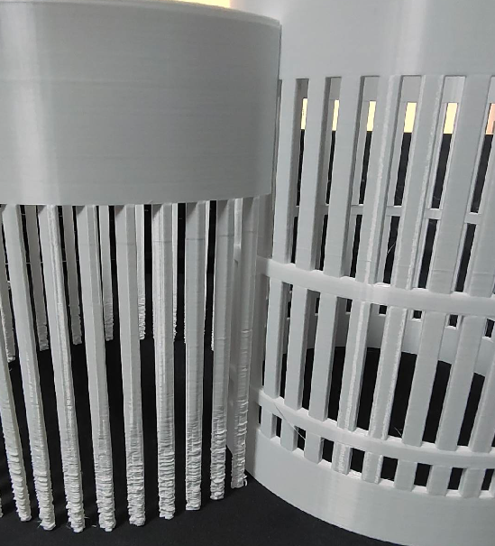 打印高长件时,越往上越容易晃动,模型抖得厉害。这是因为越高越不稳,振动和重力容易让它歪或变形(下图为效果对比)。